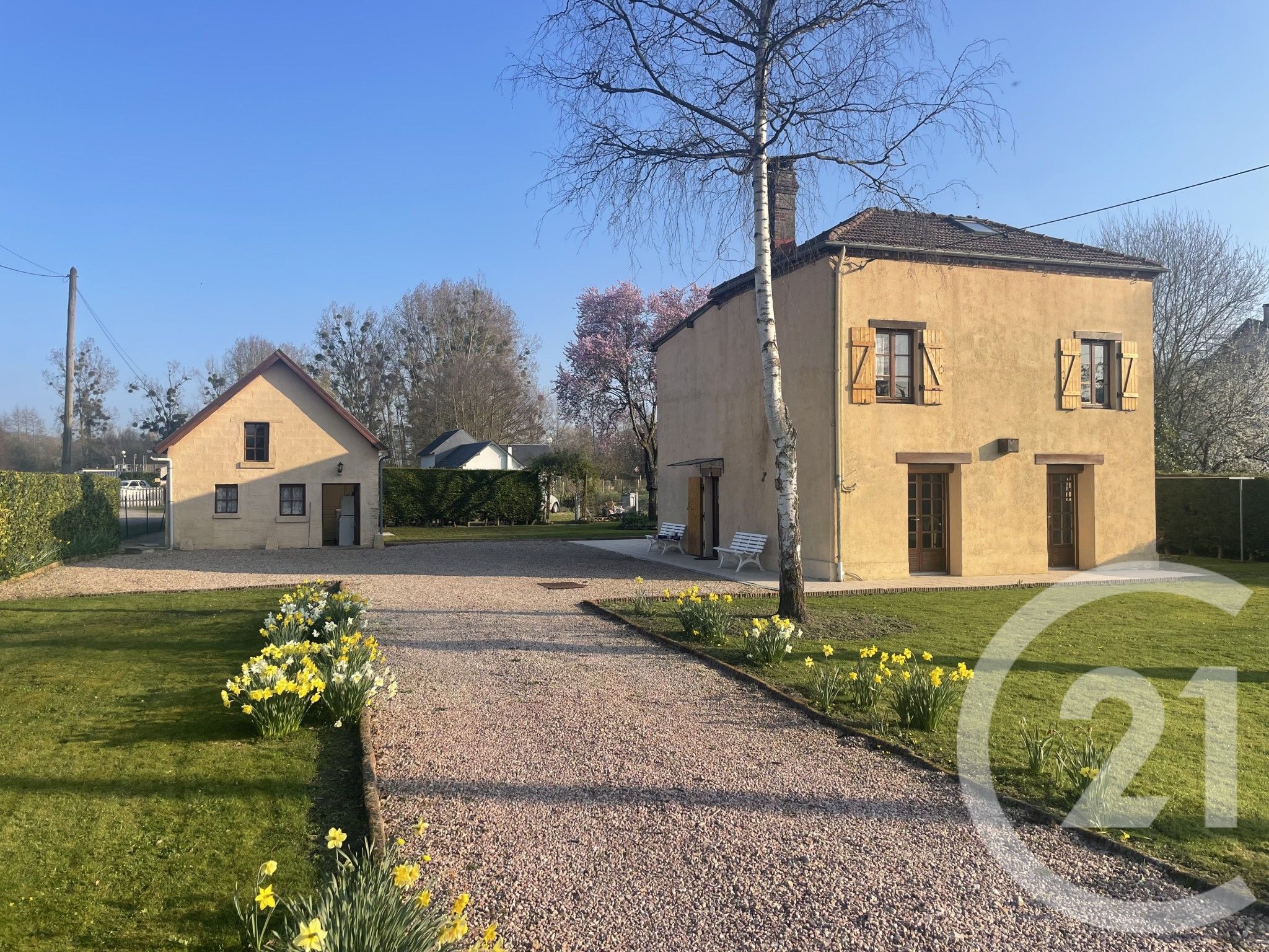 Implantée sur un vaste terrain clos d'environ 1 675 m², agrémenté d'un potager, cette propriété dispose également d'une dépendance d'environ 50 m² au sol ainsi que d'un garage, offrant de nombreuses possibilités d'aménagement ou de stockage.
